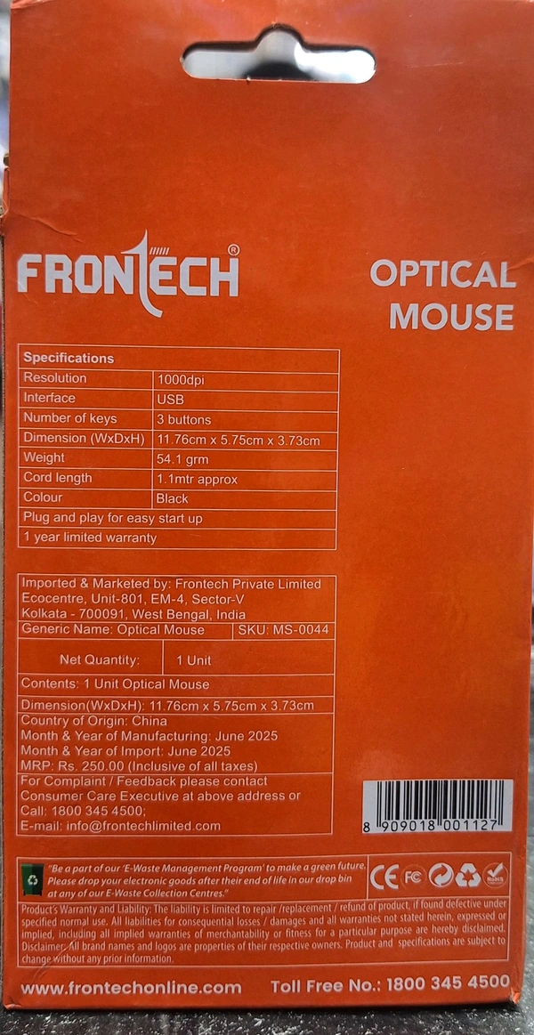 Looking for a reliable, efficient, and stylish mouse to enhance your daily tasks? The FRONTECH OPTICAL WIRE MOUSE MS-0044, available exclusively at BG Vision, is designed to deliver precision, comfort, and durability for all your computing needs. Whether you're working, gaming, or browsing, this optical mouse ensures smooth performance and effortless control.