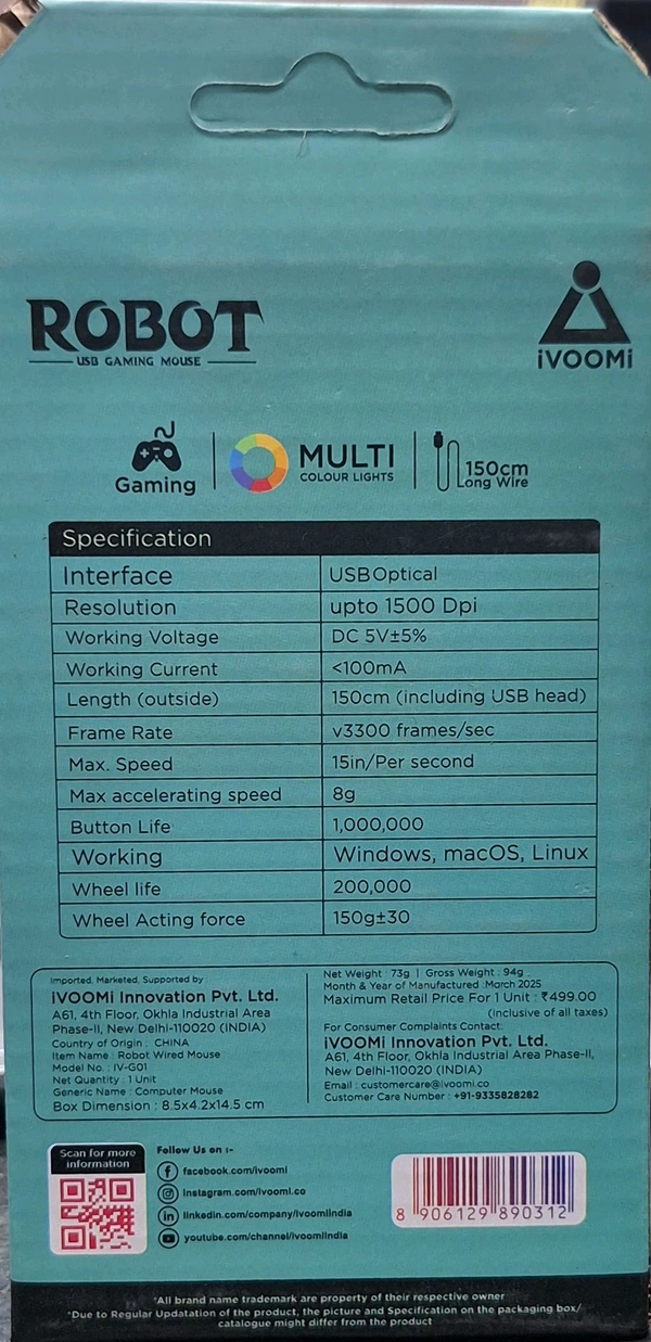 Whether you're a competitive esports player or a casual gamer looking to level up, the IVOOMI Wired Gaming Mouse RGB Robot is the perfect companion to enhance your gameplay. With its sleek design, reliable performance, and customizable RGB lighting, it’s more than just a gaming accessory—it’s a statement.