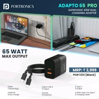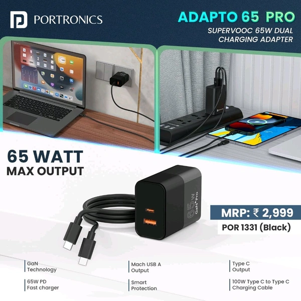 PORTRONICS ADAPTO 65 PRO GAN TECHNOLOGY DUAL CHARGER 65W (POR 1331) - Power Beyond Limits!