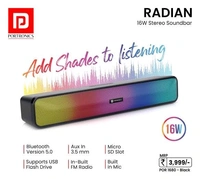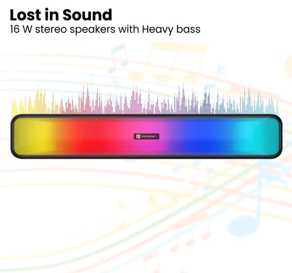 The PORTRONICS RADIAN Bluetooth 16W Stereo Soundbar is not just a sound device; it’s your gateway to an immersive audio and visual journey. Whether you're enjoying your favorite music, hosting a movie night, or just setting the mood, this soundbar is designed to deliver powerful sound and captivating LED lighting effects that elevate any space.