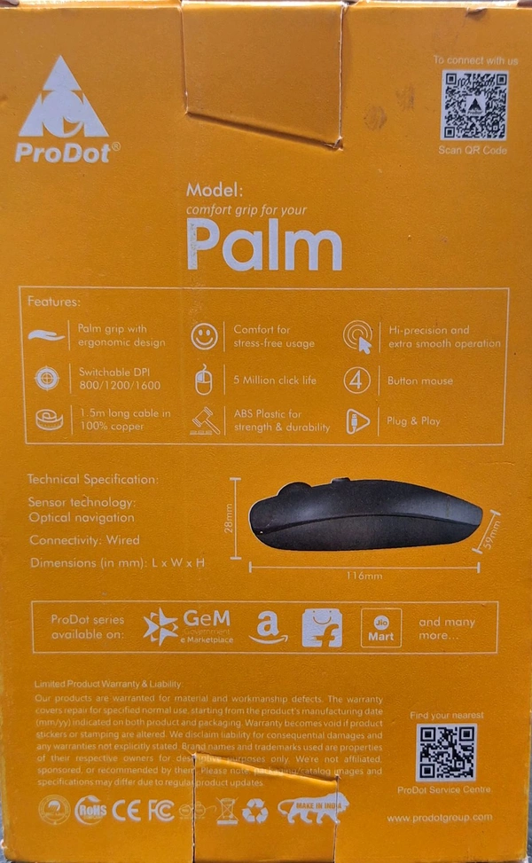 - Durable Build: Built to last, the PRODOT Wired Optical Mouse Palm is a reliable companion for everyday use.