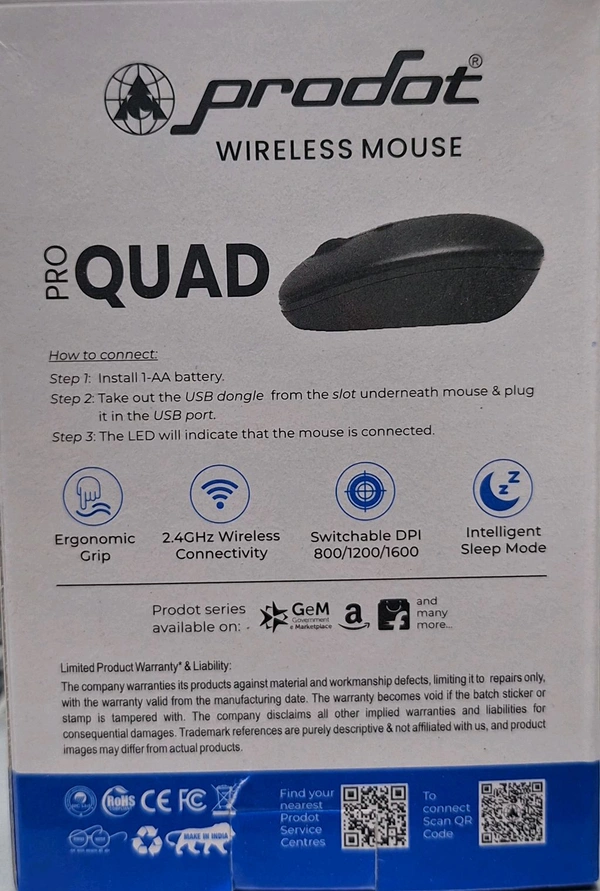 Whether you're a professional, a student, or a casual user, the PRODOT Wireless Mouse Pro Quad is designed to meet your needs and exceed your expectations. Its stylish look and unbeatable performance make it a must-have accessory for every setup.