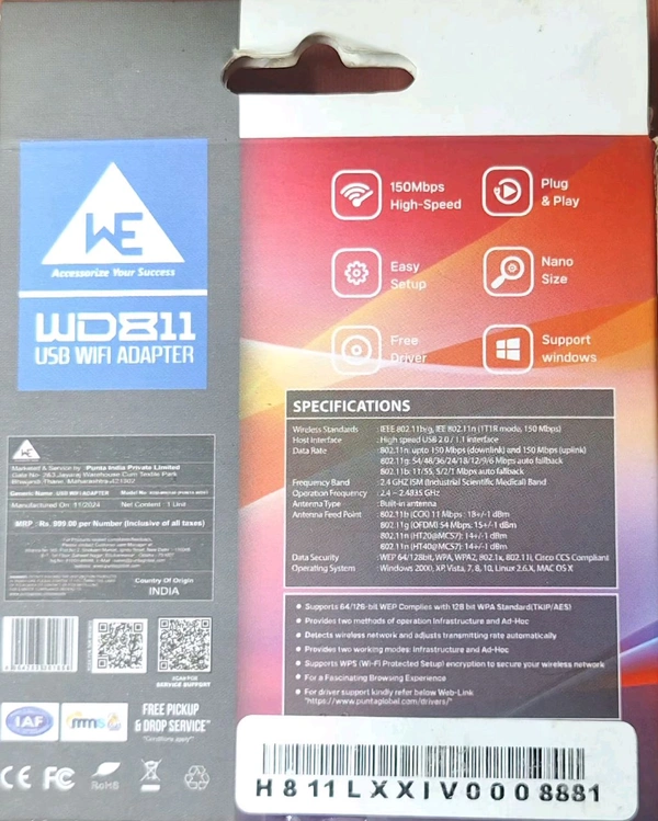 Looking for seamless and efficient wireless connectivity to enhance your online experience? The PUNTA Wireless WiFi 150Mbps Adapter WD811, proudly offered by BG Vision, is the perfect solution for all your internet needs. Designed with performance and convenience in mind, this adapter ensures a strong and stable connection whether you're streaming, gaming, or working remotely.