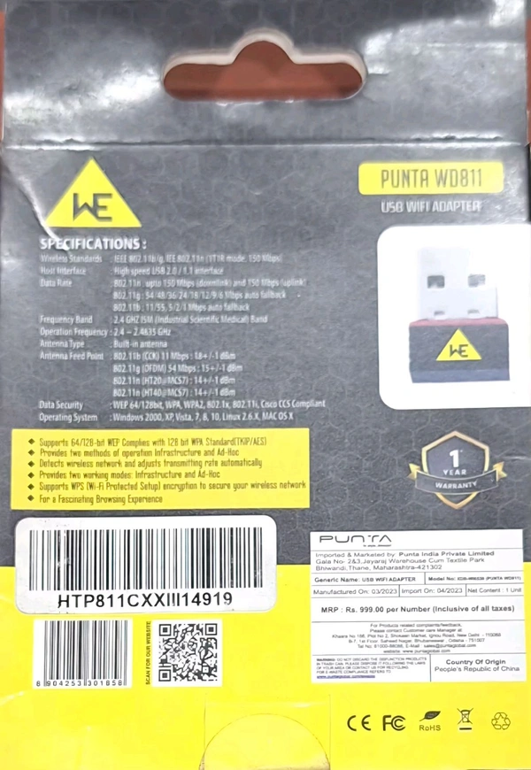 PUNTA Wireless WiFi 150Mbps Adapter WD811 - Reliable Connectivity at Your Fingertips