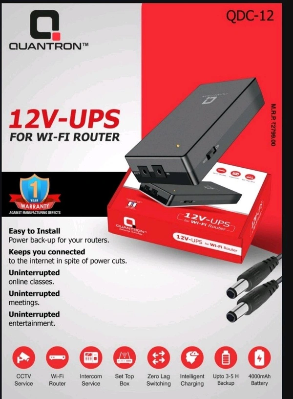 Whether you're a professional working from home, a student attending online classes, or a family enjoying streaming services, the QUANTRON 12V-UPS is the perfect addition to your tech arsenal. Don’t let power outages disrupt your life—stay connected when it matters the most.